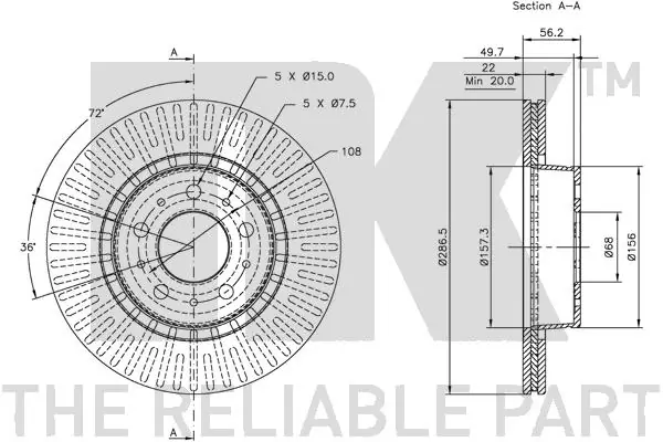 • Cercle de percage -Ø [mm] : 108