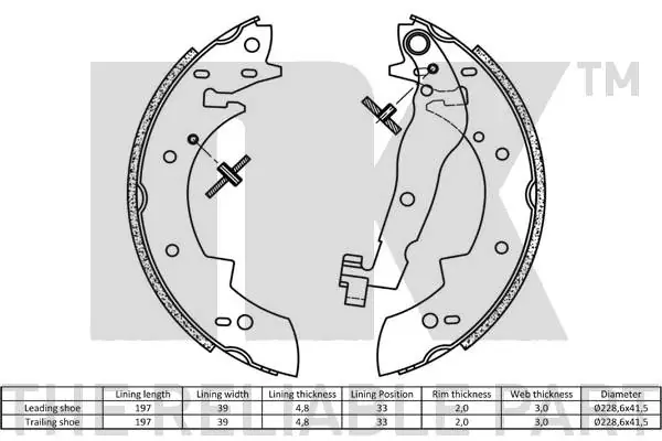 • Diamètre intérieur du tambour de frein [mm] : 228