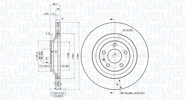 • Cercle de percage -Ø [mm] : 112,0