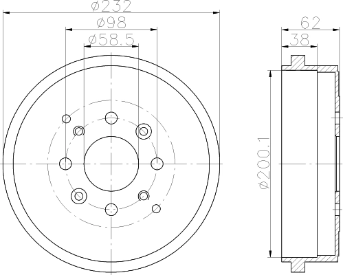 • Hauteur totale du tambour de frein [mm] : 62