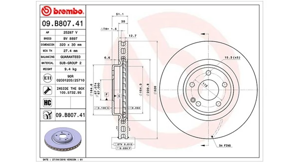 • Épaisseur du disque de frein [mm] : 11