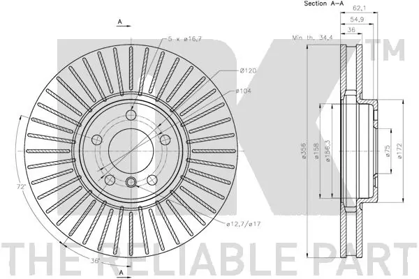 • Épaisseur du disque de frein [mm] : 36